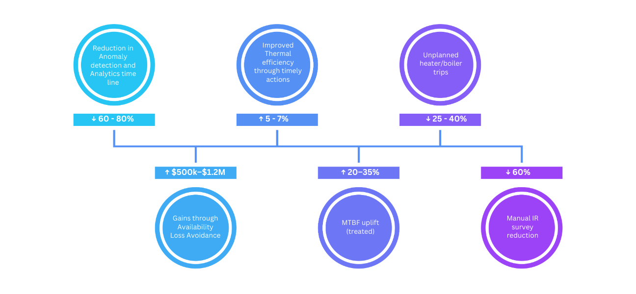 Continuous thermal analytics for high/low temperature surfaces and assets (cryogenic, cold boxes, heaters, boilers, Reactors & Regenerators, expanders, Kiln, Electrical Distribution and Transmission Facilities…etc)