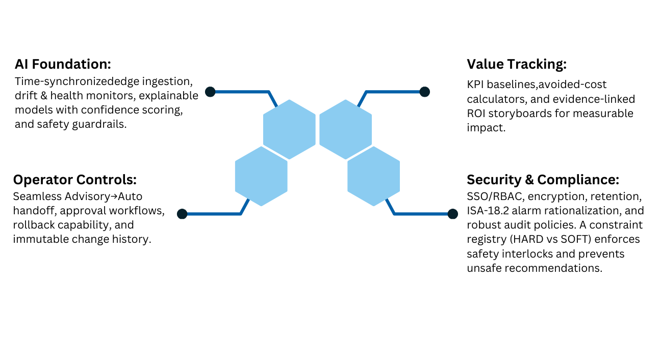 APC/MPC envelopes; interlocks; setpoint APIs; SSO/RBAC and audit trail.